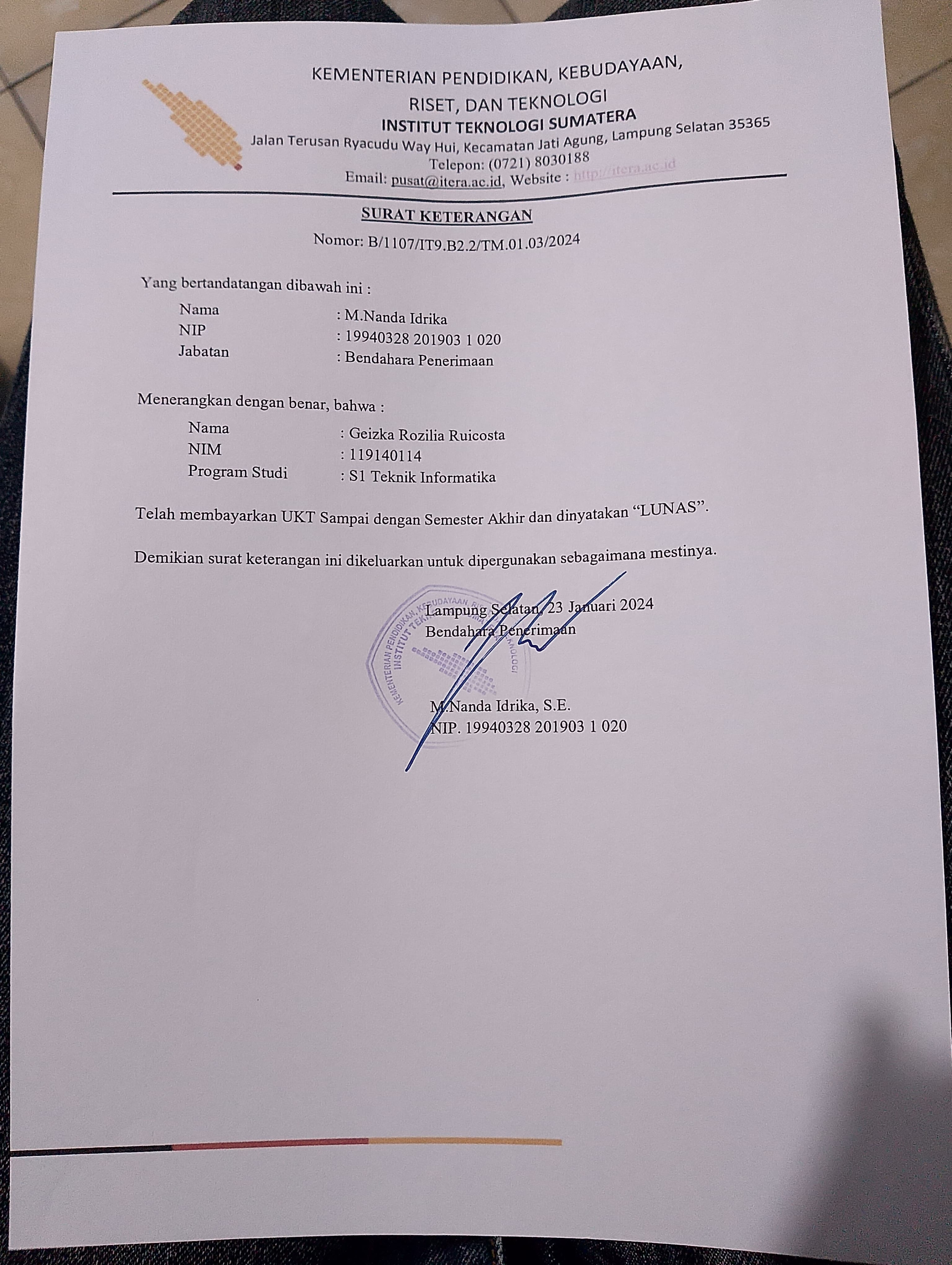 Laporan telah diteruskan ke DINAS PENDIDIKAN DAN KEBUDAYAAN